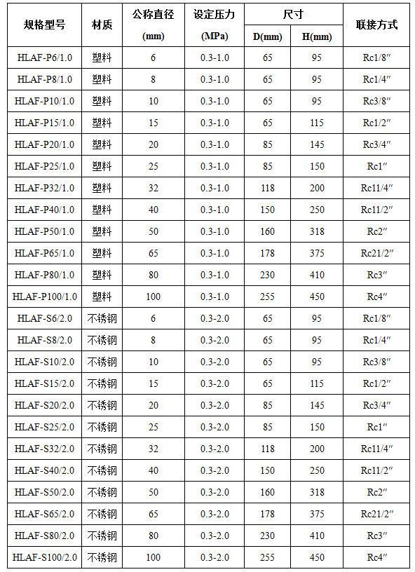 主要特点: 1.管路受压元件,释放压力,保证系统压力稳定 2.压力过高时自动打开,安全释放介质并排泄至吸入管或化学容器内 3.保护泵的安全和系统的正常运行 4.保护管路、弯头、接头,减小压力波动的冲击 安全阀尺寸规格表